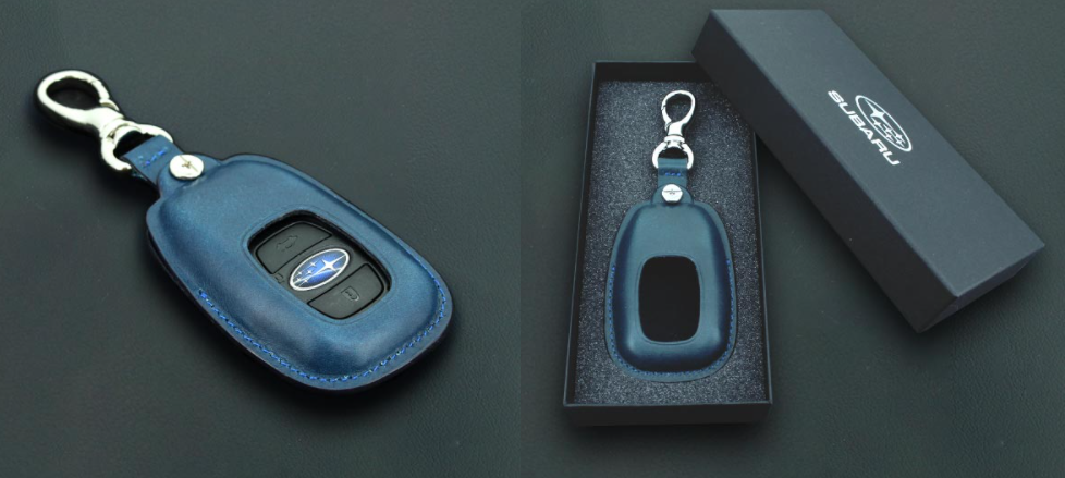 裏面にはSUBARUの打刻も入り内側はキーレスが傷つかない優しい生地を使用しております。