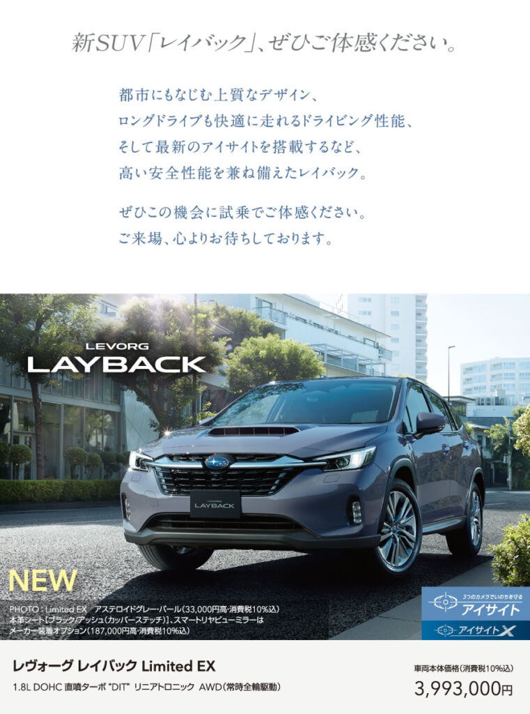 「新型LEVORG LAYBACK 試乗フェア」開催