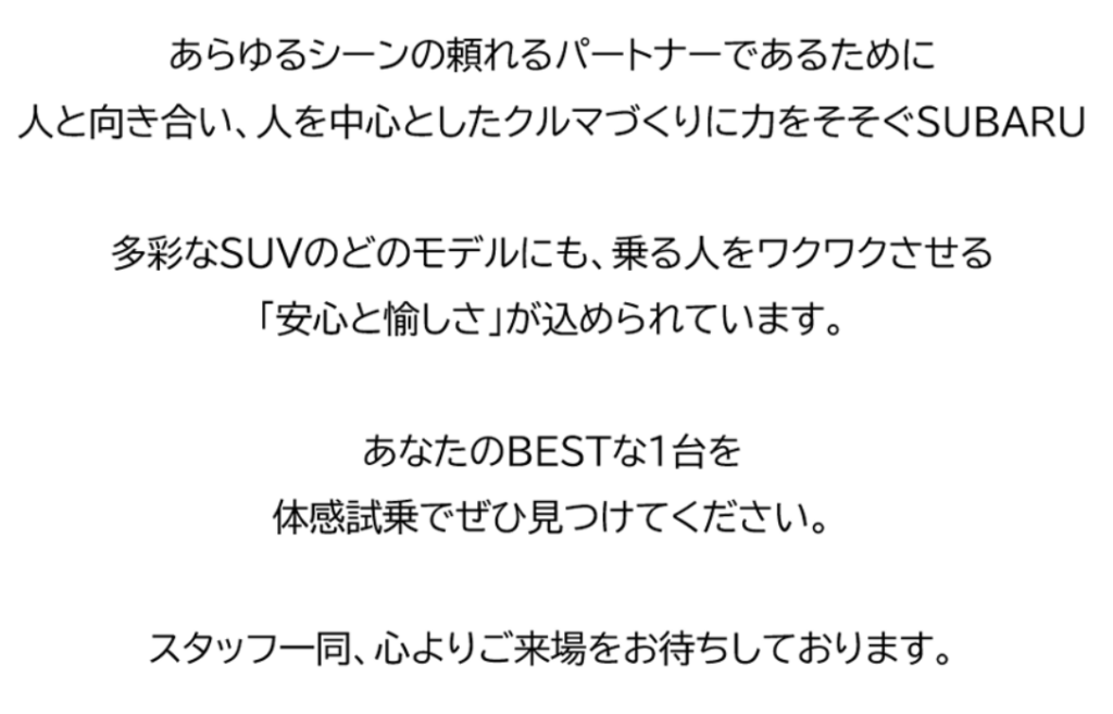 現在、インプレッサ、クロストレック、レヴォーグ、レイバック、アウトバック、WRX S4
