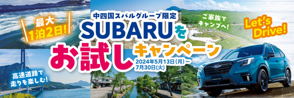 現在、「最大1泊2日!SUBARUをお試しキャンペーン」を開催中です。