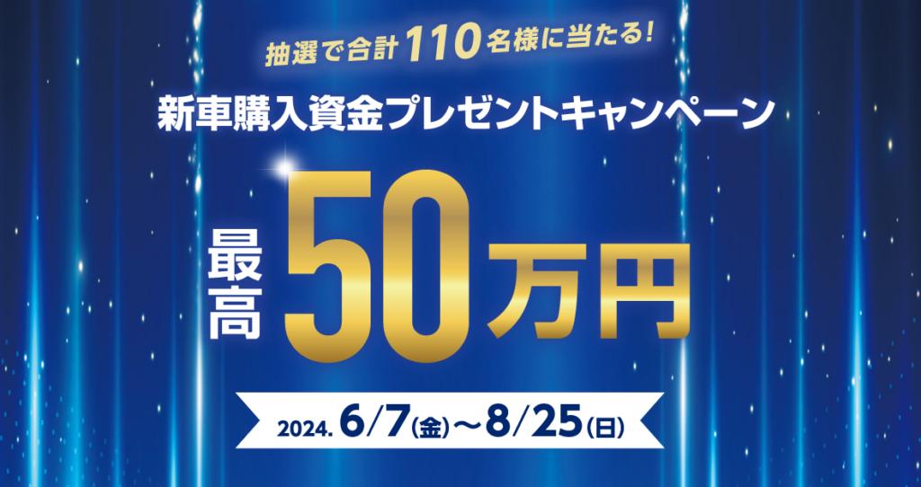 8月25日(日)までの間、新車購入資金 最高50万円 プレゼントキャンペーンを開催中です。