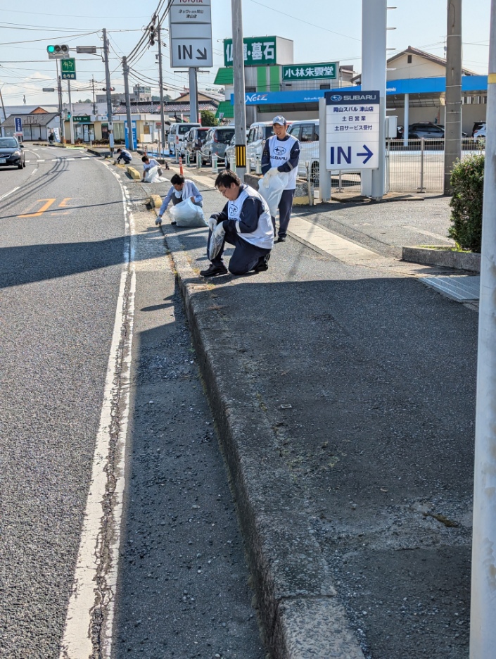 先日、津山店周辺の清掃を実施しました。暑い中でしたがみんなで一所懸命に清掃活動を実施しました。
