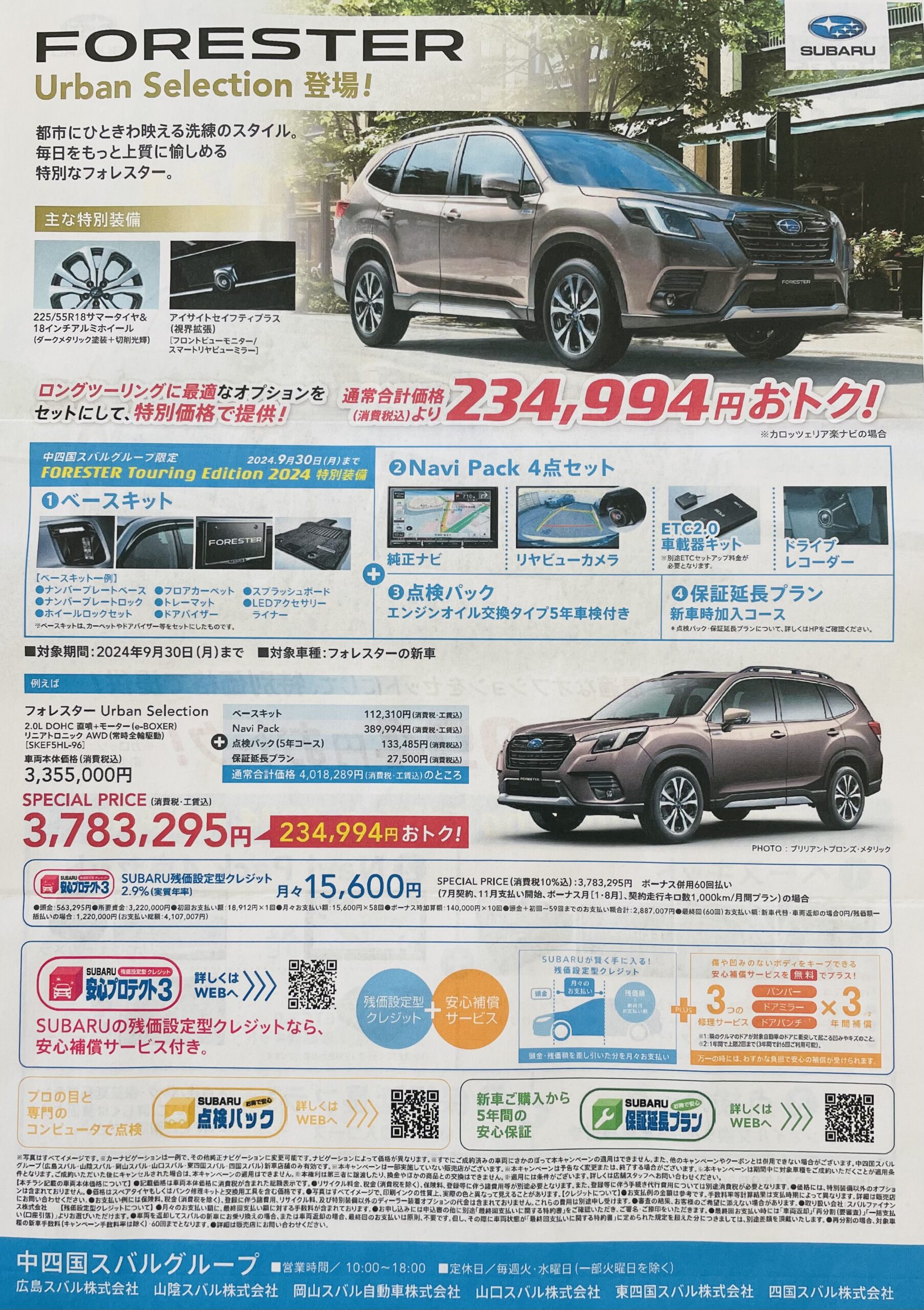 やっぱり「フォレスター」についてのご案内です。(前回の記事でご案内しておりましたのでお気づきの方もいらっしゃったと思います。)