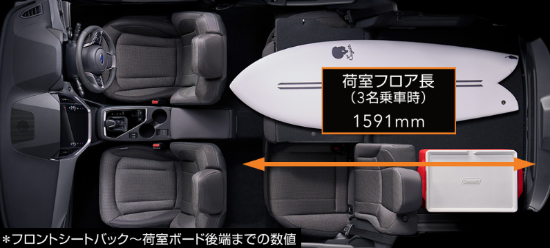 フロントシートバックまで計算に入れると意外としっかりとサイズが取れるようです!