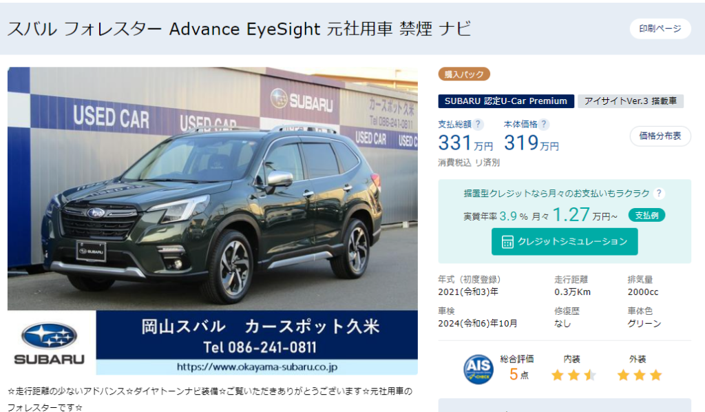 スバル フォレスター Advance EyeSight 元社用車 禁煙 ナビ