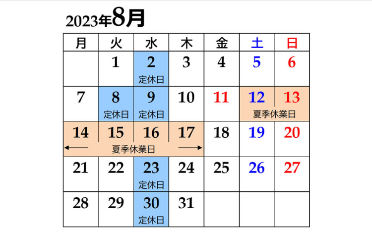 夏季店休日のお知らせ