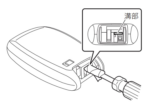 ④溝部にマイナスドライバーを差し込んで、キーを半分にします