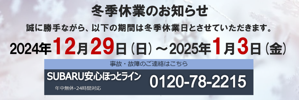 2025年1月4日(土)より通常通り営業しておりますので、よろしくお願いいたします。