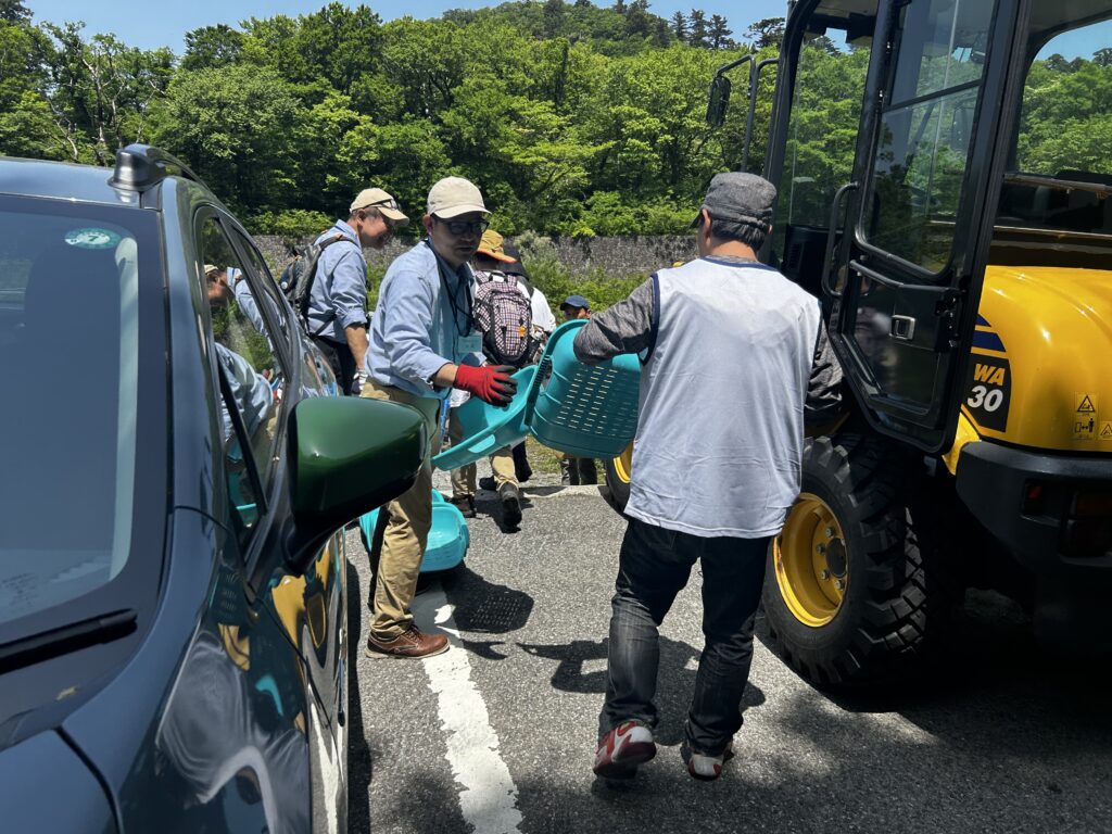 これは、登山者に一木一石用に用意されている石や苗木を持って山頂に登ってもらい、それらの石などで山頂の浸食溝を埋めたり、失われた緑を復活させ、大山の山頂を守っていこうというものです。