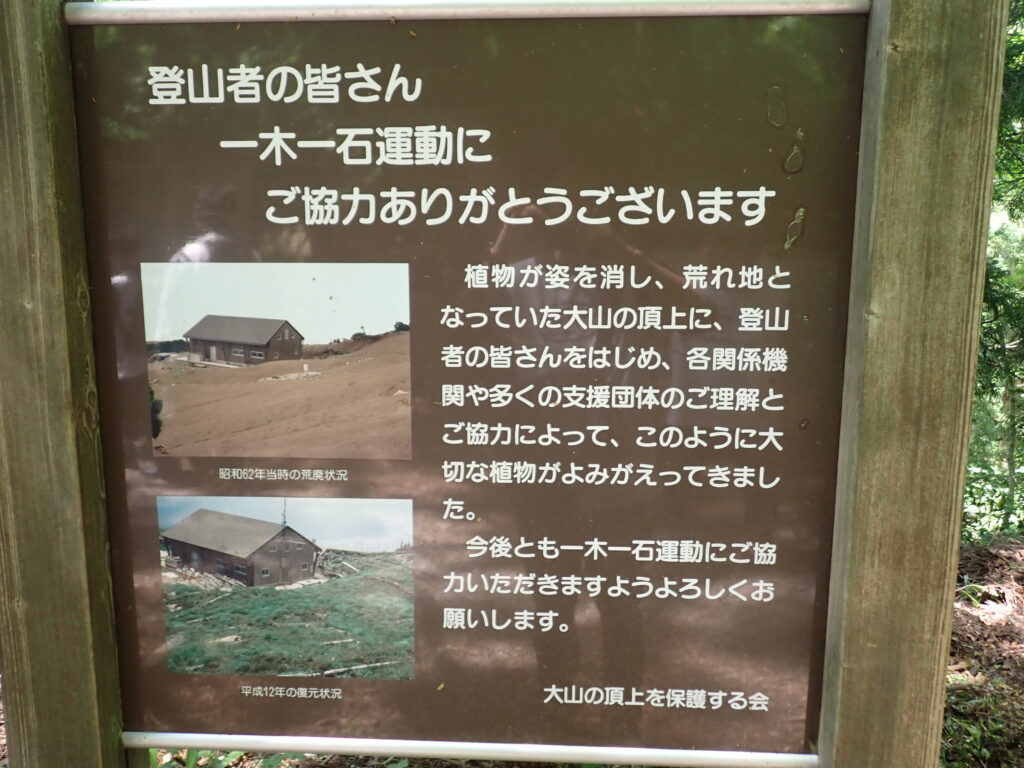 昭和60年『大山の頂上を保護する会』が結成され、『一木一石運動』が始まりました。