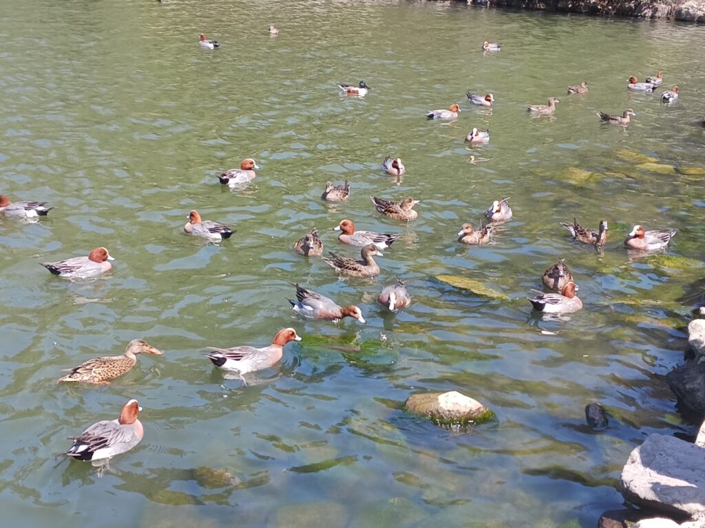 ★奥へ進んで行くと「赤松池」があります たくさんの鴨がいてパン等をあげると泳ぐ姿や食べる所が