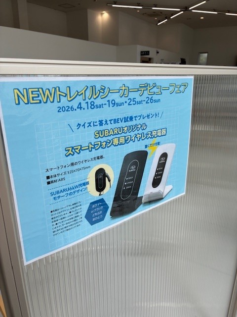 SUBARUオリジナルのスマートフォン専用ワイヤレス充電器をプレゼントしています。