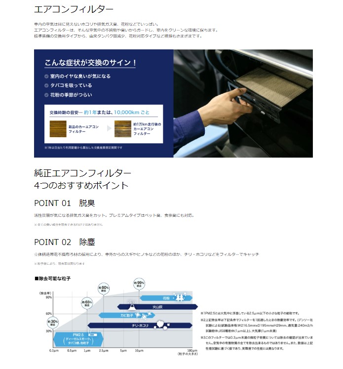 交換されないと効果が半減したり、車内に嫌なニオイが発生したりします。