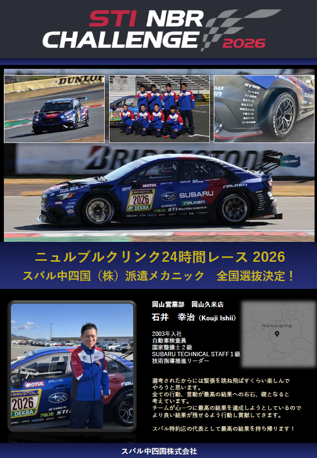 NBR CHALLENGEへのディーラーメカニック派遣への参加が決定しています。