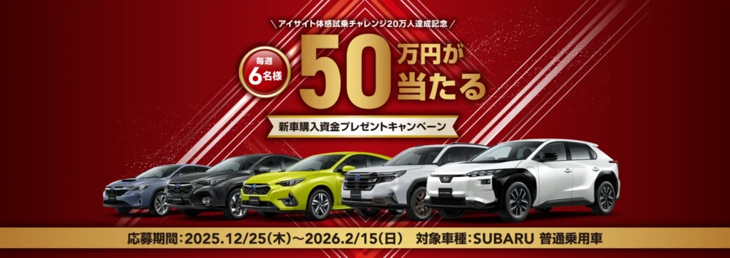現在、50万円が当たる購入資金プレゼントキャンペーンを開催中です!!