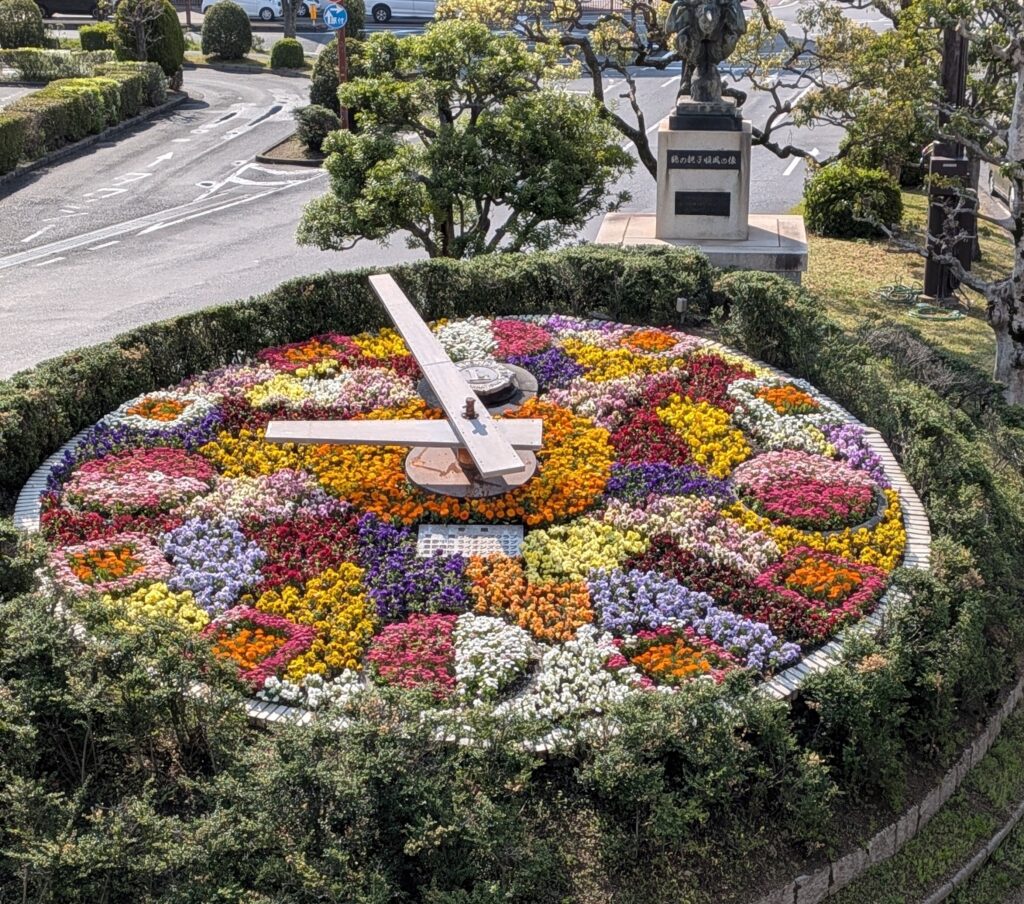 こちらは倉敷駅南口のロータリーにある花時計の写真です。